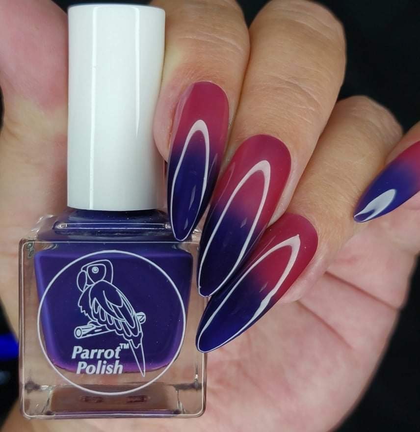 Love in the Fields is a brilliant thermal nail polish that changes color based on whether its hot or cold. A deep blue when cool, our premium nail polish transitions to vibrant pinkish-red as the temperature warms up. This transforming polish is suitable for natural or acrylic nails and can be layered for an even deeper, more opaque color. This salon quality nail polish dries to a matte finish, but create a high-gloss shine with a clear top coat. This temperature-based polish provides a dramatic color blend, and can be used with various manicure techniques like water marbling to create a gorgeous work of nail art. Our line of thermal polishes are easy to apply, and dry quickly with a smooth finish. As with all of our Parrot Polish products, non-toxic Love in the Fields thermal nail polish is cruelty-free and 10-free.