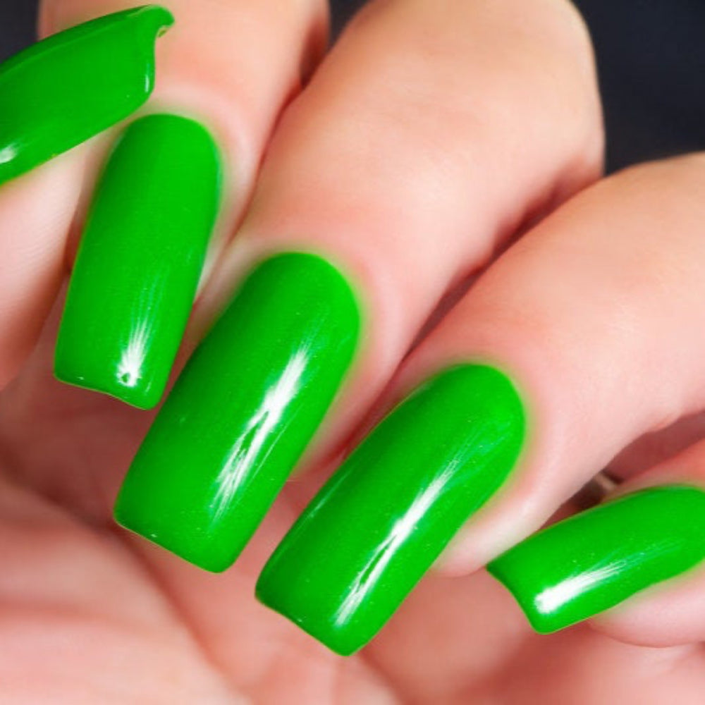 A dark neon green, this Mahi Mahi Green nail polish features a touch of dazzling sparkle. Our bright nail polish - named after the dolphin fish - is a part of the Jungle Collection and can be used with various application techniques like water marbling for a one-of-a-kind manicure on natural or acrylic nails. Add multiple coats of this premium polish for a deeper, more opaque color. Our vibrant neon polish dries to a smooth finish and can be topped with a clear coat for a high-gloss shine. Mahi Mahi Green nail polish is non-toxic, cruelty-free, and 10-free, just like all Parrot Polish products.