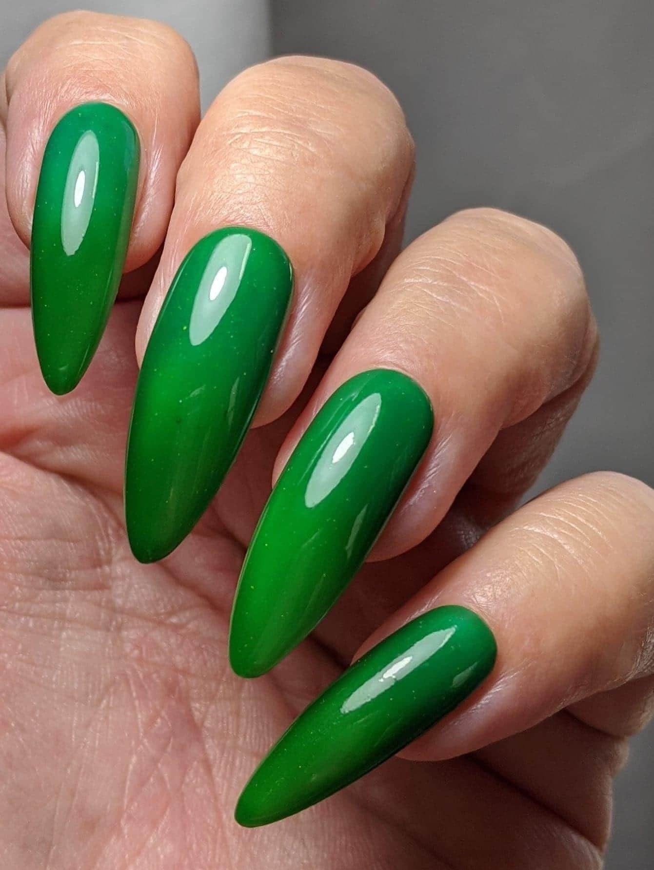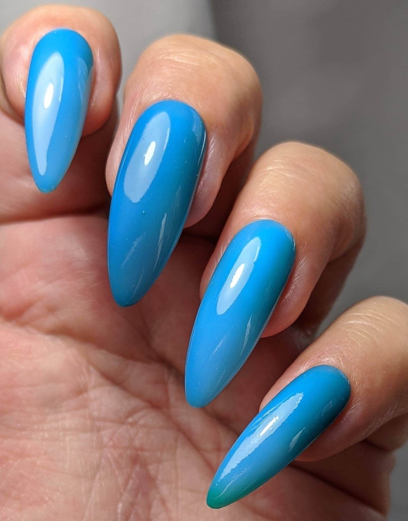 With a hint of lovely shimmer, Ocean Currents thermal nail polish changes color depending on whether it's warm or cool. Our vibrant color-changing nail polish transforms from grass green to a medium blue shade when it warms. This premium polish is suitable for natural or acrylic nails and can be layered for an even deeper, more dramatic color. This temperature-based polish provides a bold color combo for dramatic effect, and it can be used with various application techniques like water marbling to create gorgeous nail art. A salon quality nail polish, it dries to a matte finish, but add a clear top coat for a brilliant, glossy shine. Our line of thermal polishes are easy to apply, and dry quickly with a smooth finish. As with all of our Parrot Polish products, non-toxic Ocean Currents thermal nail polish is cruelty-free and 10-free.