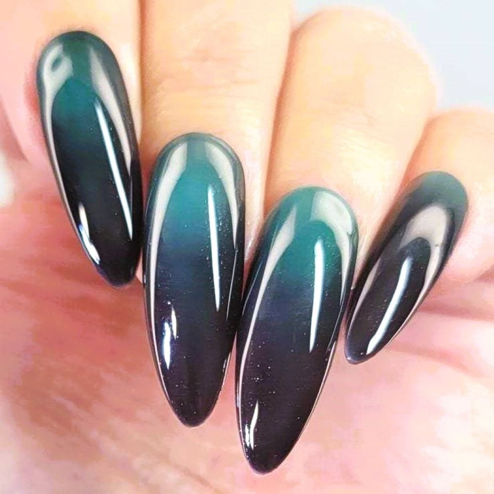 Parrot Polish "Costa Rica Dreams" is a thermal nail lacquer that shifts beautifully between black, blue, and turquoise shades. This expert-formulated polish responds to temperature changes, creating a dynamic and captivating effect on your nails. Ideal for those seeking a unique, color-changing manicure with a smooth, high-quality finish.