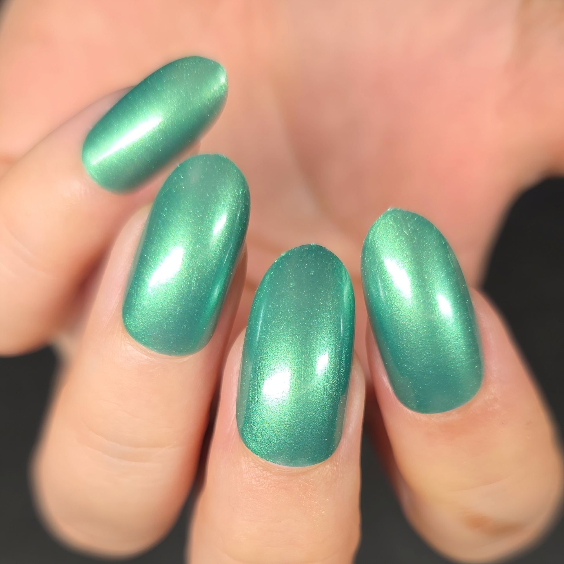 Evergreen Kisses delivers a sophisticated green-to-teal shimmer that captures light with refined elegance. This premium nail lacquer combines rich, jewel-toned pigmentation with a luminous shimmer finish that enhances natural nail contours. The .05 fl oz formula ensures precision application and extended wear. Perfect for those seeking a polished, dimensional look that transitions beautifully from day to evening. Parrot Polish's expert formulation provides smooth coverage and lasting vibrancy.