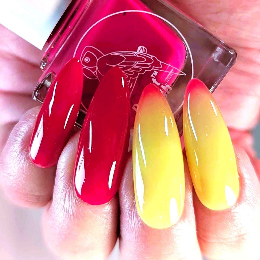 Discover the unique color-changing capabilities of Parrot Polish Raspberry Lemonade Thermal Nail Polish. This vibrant polish transforms from a playful raspberry shade to a refreshing lemonade hue with changes in temperature. A must-have for any nail polish enthusiast looking for a fun and versatile addition to their collection.