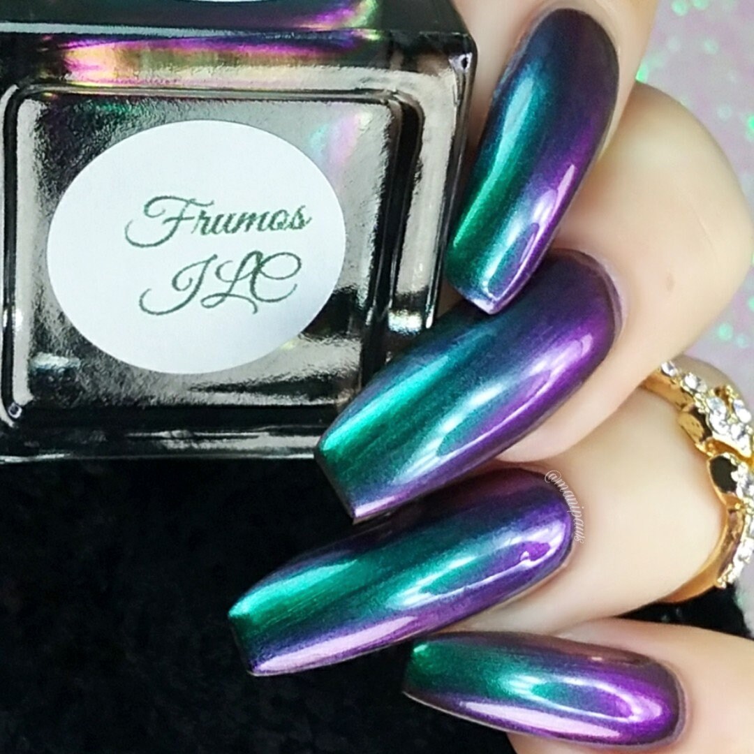 Part of our International Love Collection, Frumos (Beautiful in Romanian) is a multicolor ultrachrome nail polish that shifts between green, blue, and purple. This mesmerizing nail polish morphs colors as you move your hand, and makes a brilliant manicure on both natural and acrylic nails. Our blue-green polish features a color-morphing chrome finish and can be added in multiple coats for deeper color. Our premium ultrachrome nail polish is easy to apply and dries quickly with a smooth finish. Frumos nail polish is non-toxic, cruelty-free, and 10-free, just like all of our Parrot Polish products.