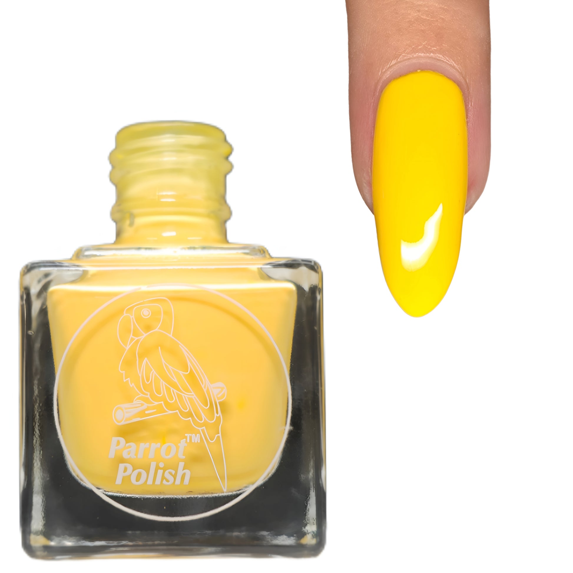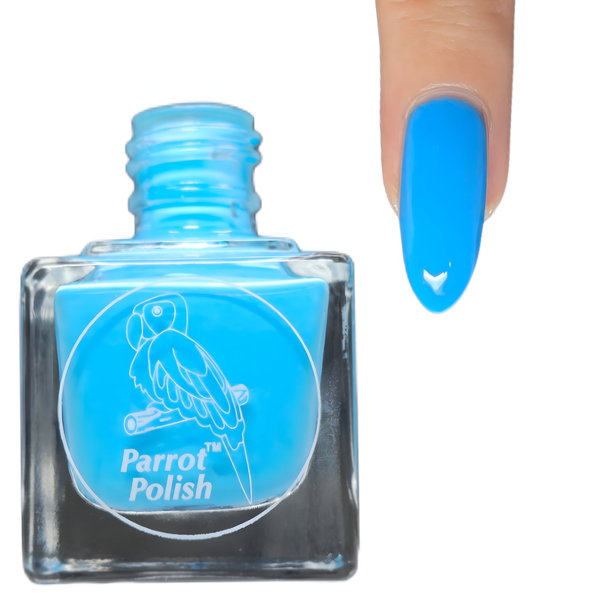 The Macaron Collection is a 6-piece set of beautiful pastel and light neon colors. This pastel neon nail polish set includes Blue Hawaiian, purple Honey Lavender, green Irish Cream, yellow Jelly Lemon, orange Mango Cream, and pink Neapolitan. Each cheerful color can be used in various application techniques like water marbling on natural or acrylic nails. Add multiple coats of these premium nail polishes for an opaque color, and top your manicure with a clear coat for an extra glossy finish. Our salon-quality Macaron Collection polish set is easy to apply, and dries quickly with a smooth finish. Just like all of our Parrot Polish products, the spring time Macaron Collection features non-toxic, cruelty-free, and 10-free polishes.