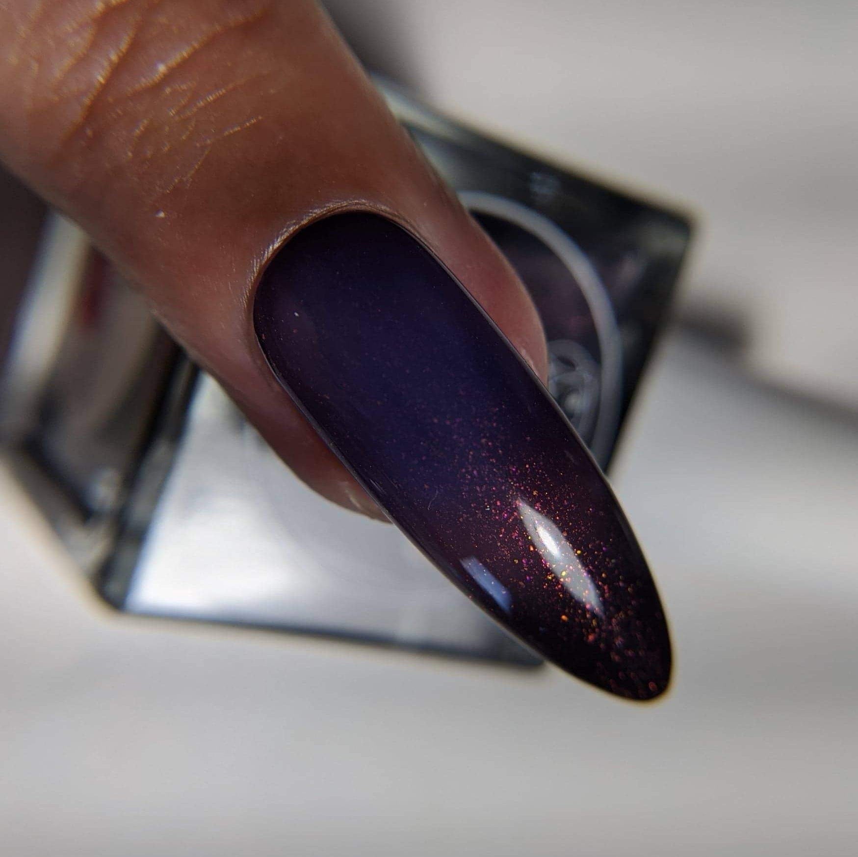 Allow yourself to be seduced by The Seductress tri-color thermal nail polish that transforms color depending on whether it's hot or cold. Starting out black when cool, this color-changing polish evolves into red and then to purple when its hot. Featuring a gorgeous shimmer, our premium thermal nail polish can be layered for deeper opaque colors. This temperature-based polish provides a beautifully blended color combination, and it can be used with various application techniques like water marbling to create gorgeous nail art. Suitable for natural or acrylic nails, this color-changing nail polish dries matte, but can be finished with a clear top coat for that luxurious, high-gloss shine. Our line of thermal polishes are easy to apply, and dry quickly with a smooth finish. As with all of our Parrot Polish products, non-toxic The Seductress thermal nail polish is cruelty-free and 10-free.